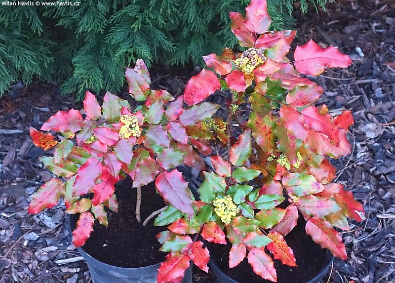 ![]() | Mahonia 'Cabaret' - mahónie Cabaret® je úchvatný, nízký keř, jehož hlavní atrakcí jsou květy od září až do prvních silných mrazů listopadu. Jsou uspořádané ve středně dlouhých (10-15 cm) vzpřímených hroznech, poupata jsou sytě korálově šarlatová až červená a otevírají se do … |