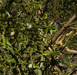 ![]() | Viscum album - jmelí bílé Čeleď: ochmetovité (Loranthaceae) Stálezelený dvoudomý poloparazitický keřík, hustě větvený, kulovité trsy mohou mít až 100 cm v průměru. Stonky jsou vidličnaté, křehké, oblé, zelené až žlutozelené. Kořenový systém jmelí je nahrazen vlákny (haustoriemi) … |